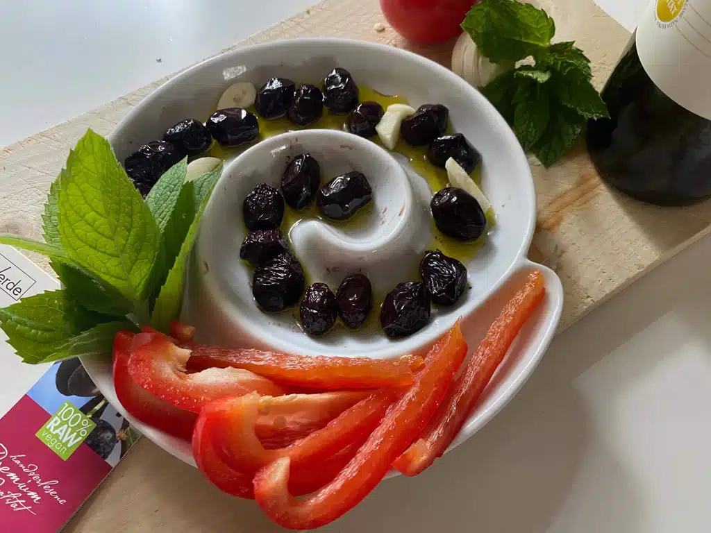Ja, Experten empfehlen etwa 7 natürlich gereifte schwarze Oliven pro Tag.